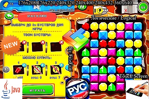 Помогите Кроту Мэнни стать богатым с помощью java-игры Miner Jewels! Год выпуска/Year of issue: 2013 Жанр/Genre: Логические / Logical Категория/Category: Java игры/Java games Размер экрана/Screen size: 176x208 176x220 240x320 240x400 240х432 360x640 Разработчик/Developer: Softgames Платформа/Platform: Java Формат файла/File format: .jar Вид устройства/Appearance of the device: для телефонов/for phones Язык интерфейса/Interface language: русский (RU) английский (ENG) Размер/Size: 1,90 Mb Touch Screen/Stylus: есть/there are Статус игры/The status of the game: бесплатная/free Подготовил/Prepared by: FileFast